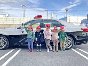 交通安全教室では、パトカーに大興奮♪