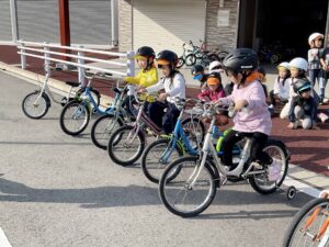 交通児童遊園では、自転車に乗りました。